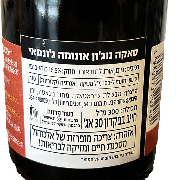 סאקהנוקוני ג'ונמאי 720 מ"לחמיצות מתונה וגוף מאוזן מעניקים לסאקה הזה טעם מרענן ונעים. ניחוחות דמתיים ונגיעות של מתיקות רכה נמסים באלגנטיות על החך. זהו שילוב מהפנטשל עוצמת הסאקה מאקיטה עם הרכות המעודנת של ג’ונמאי – חוויית טעם מלאה ומאוזנת.