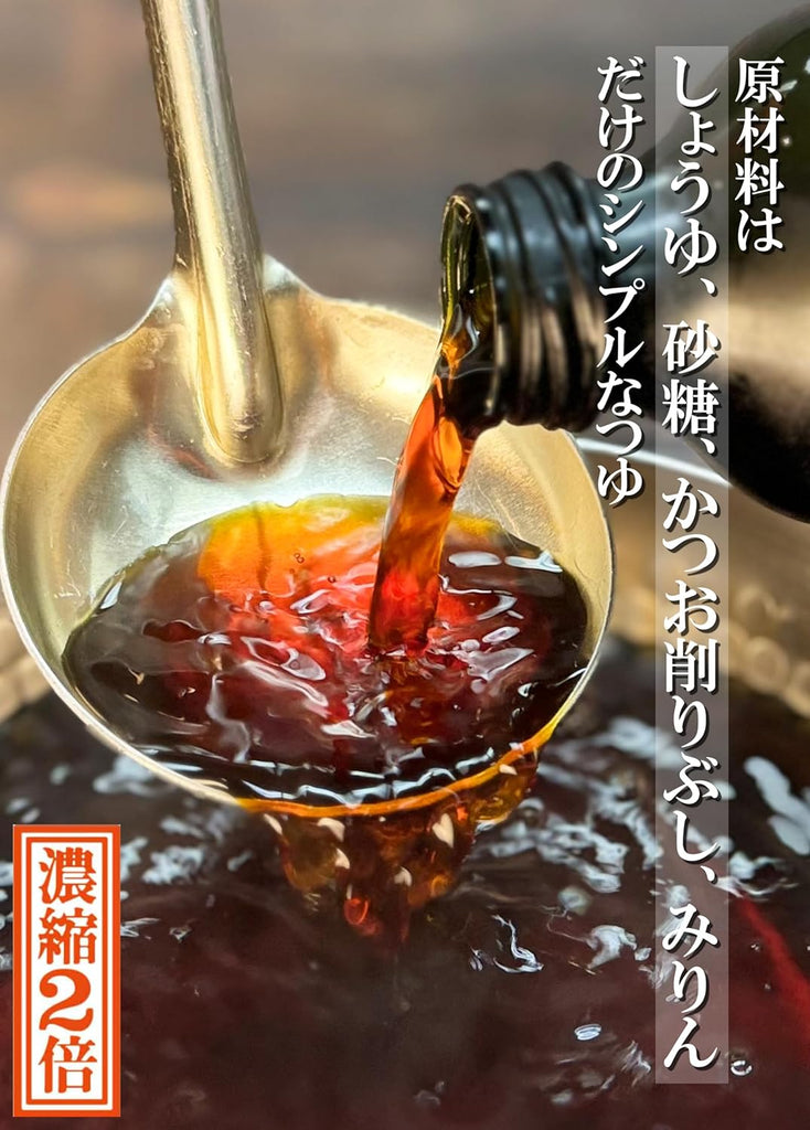 המרכיבים רק רוטב סויה, סוכר, שבבי בוניטו ומירין.