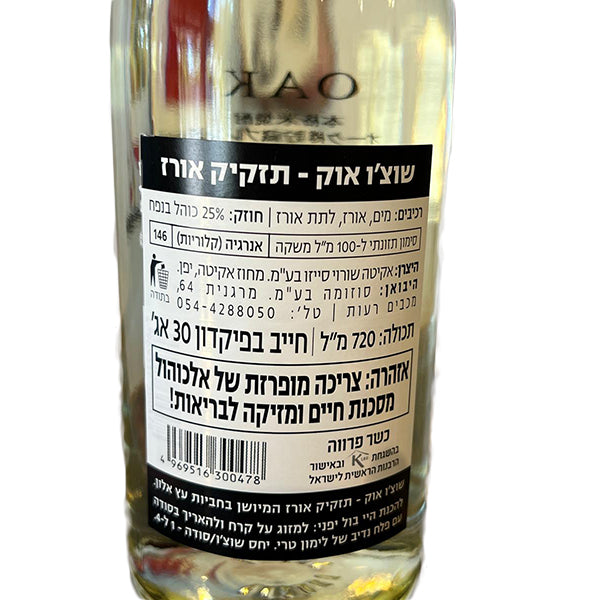 תזקיק אורז המיושן בחביות עץ אלון. שילוב נפלא של טעם האורז עם ניחוח עדין של עץ אלון לבן, וארומות המזכירות אגוזים ווניל.