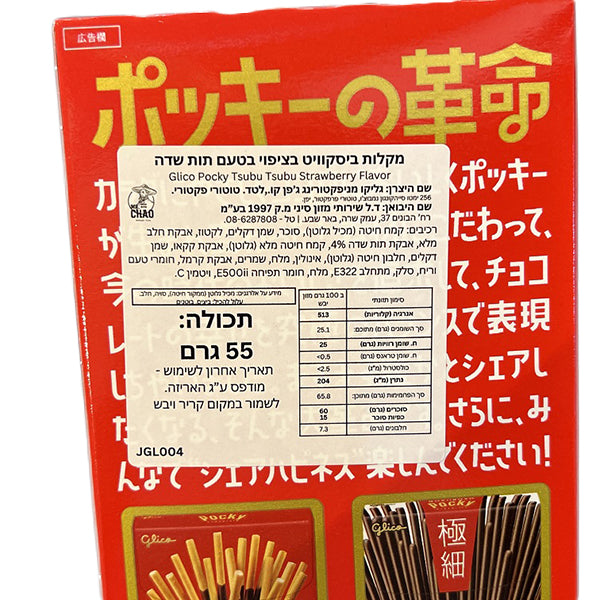 {"id":7798331998291,"title":"Glico Pocky Chocolate with Cocoa Powder 62g","handle":"glico-pocky-chocolate-with-cocoa-powder-62g-2packs","description":"\u003cdiv style=\"direction: rtl;\"\u003e\n\u003cp id=\"popup_cart_title\"\u003eפוקי מקלות שוקולד עם אבקת קקאו 62 גרם\u003cbr\u003e\u003cbr\u003e\u003c\/p\u003e\n\u003c\/div\u003e","published_at":"2026-01-12T14:22:18+02:00","created_at":"2026-01-11T14:58:14+02:00","vendor":"GOJAPAN Israel","type":"Products","tags":["Dry foods","DryFood","Food","Foods","New items","Snack","Snacks","Vegetarian"],"price":1400,"price_min":1400,"price_max":1400,"available":true,"price_varies":false,"compare_at_price":null,"compare_at_price_min":0,"compare_at_price_max":0,"compare_at_price_varies":false,"variants":[{"id":43412954415187,"title":"Default Title","option1":"Default Title","option2":null,"option3":null,"sku":"010529-dlmazon","requires_shipping":true,"taxable":true,"featured_image":null,"available":true,"name":"Glico Pocky Chocolate with Cocoa Powder 62g","public_title":null,"options":["Default Title"],"price":1400,"weight":70,"compare_at_price":null,"inventory_quantity":20,"inventory_management":"shopify","inventory_policy":"deny","barcode":null,"requires_selling_plan":false,"selling_plan_allocations":[]}],"images":["\/\/il.gojapan.net\/cdn\/shop\/files\/010529-dlmazon.jpg?v=1768136354","\/\/il.gojapan.net\/cdn\/shop\/files\/010529-dlmazon-1.jpg?v=1768136354","\/\/il.gojapan.net\/cdn\/shop\/files\/010529-dlmazon-2.jpg?v=1768136354","\/\/il.gojapan.net\/cdn\/shop\/files\/010529-dlmazon-3.jpg?v=1768204194"],"featured_image":"\/\/il.gojapan.net\/cdn\/shop\/files\/010529-dlmazon.jpg?v=1768136354","options":["Title"],"media":[{"alt":null,"id":31789432569939,"position":1,"preview_image":{"aspect_ratio":1.0,"height":600,"width":600,"src":"\/\/il.gojapan.net\/cdn\/shop\/files\/010529-dlmazon.jpg?v=1768136354"},"aspect_ratio":1.0,"height":600,"media_type":"image","src":"\/\/il.gojapan.net\/cdn\/shop\/files\/010529-dlmazon.jpg?v=1768136354","width":600},{"alt":null,"id":31789432602707,"position":2,"preview_image":{"aspect_ratio":1.0,"height":600,"width":600,"src":"\/\/il.gojapan.net\/cdn\/shop\/files\/010529-dlmazon-1.jpg?v=1768136354"},"aspect_ratio":1.0,"height":600,"media_type":"image","src":"\/\/il.gojapan.net\/cdn\/shop\/files\/010529-dlmazon-1.jpg?v=1768136354","width":600},{"alt":null,"id":31789432635475,"position":3,"preview_image":{"aspect_ratio":1.0,"height":600,"width":600,"src":"\/\/il.gojapan.net\/cdn\/shop\/files\/010529-dlmazon-2.jpg?v=1768136354"},"aspect_ratio":1.0,"height":600,"media_type":"image","src":"\/\/il.gojapan.net\/cdn\/shop\/files\/010529-dlmazon-2.jpg?v=1768136354","width":600},{"alt":null,"id":31792838443091,"position":4,"preview_image":{"aspect_ratio":1.0,"height":600,"width":600,"src":"\/\/il.gojapan.net\/cdn\/shop\/files\/010529-dlmazon-3.jpg?v=1768204194"},"aspect_ratio":1.0,"height":600,"media_type":"image","src":"\/\/il.gojapan.net\/cdn\/shop\/files\/010529-dlmazon-3.jpg?v=1768204194","width":600}],"requires_selling_plan":false,"selling_plan_groups":[],"content":"\u003cdiv style=\"direction: rtl;\"\u003e\n\u003cp id=\"popup_cart_title\"\u003eפוקי מקלות שוקולד עם אבקת קקאו 62 גרם\u003cbr\u003e\u003cbr\u003e\u003c\/p\u003e\n\u003c\/div\u003e"}