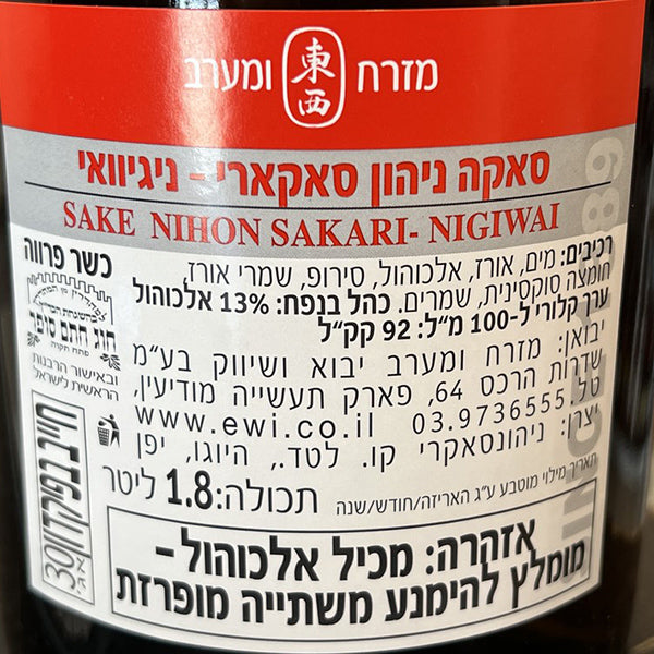 סאקה ניהון סאקארי ניגיוואיי 1.8 ליטר