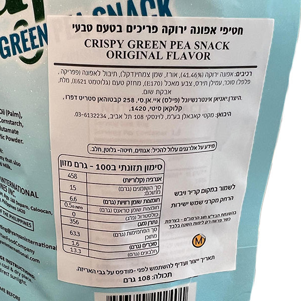 חטיפי אפונה ירוקה פריכים בטעם טבעי 108גרם